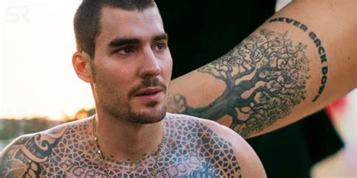 - Tattoos: Has full-body tattoos, including a large portrait of his wife on his chest